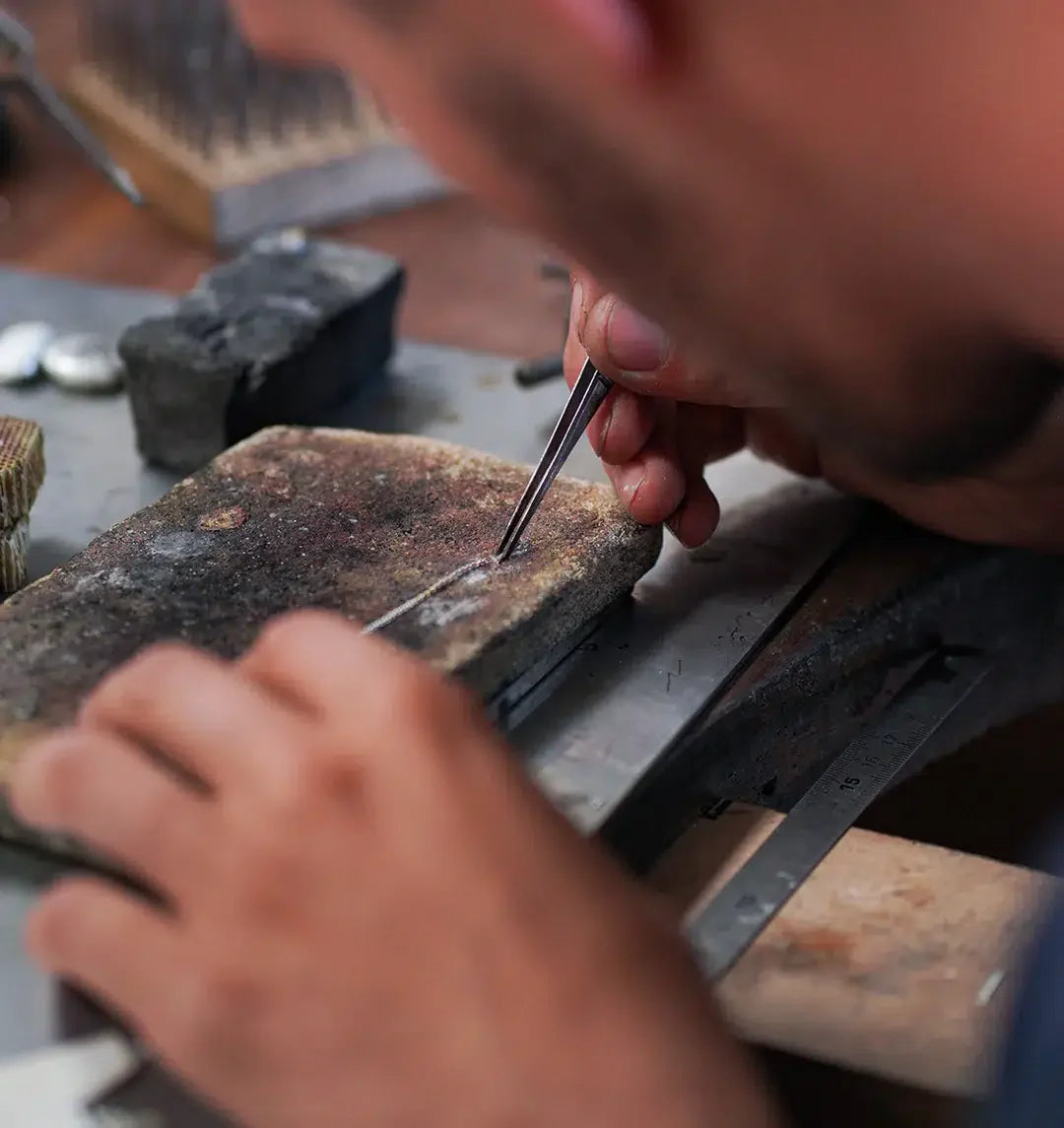 Le design, la conception et la finition de chacun de nos bijoux sont entièrement réalisés au sein de nos ateliers. Chaque pièce est fabriquée et contrôlée à la main. Chaque étape de la création fait l’objet de la plus grande attention et du plus grand soin.